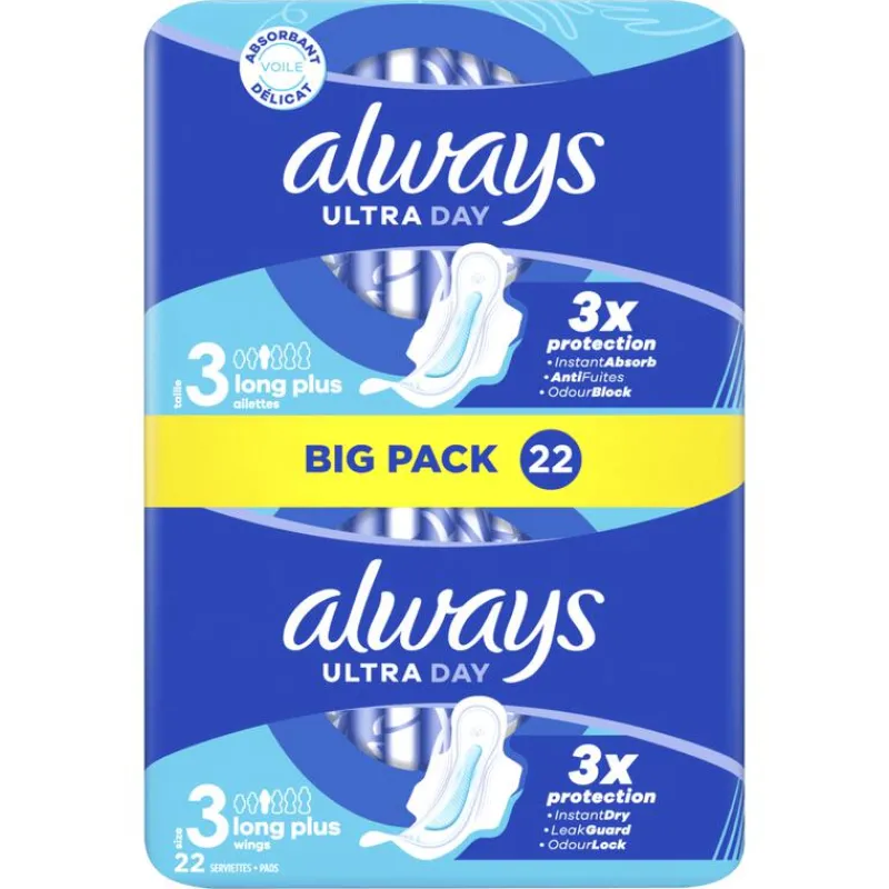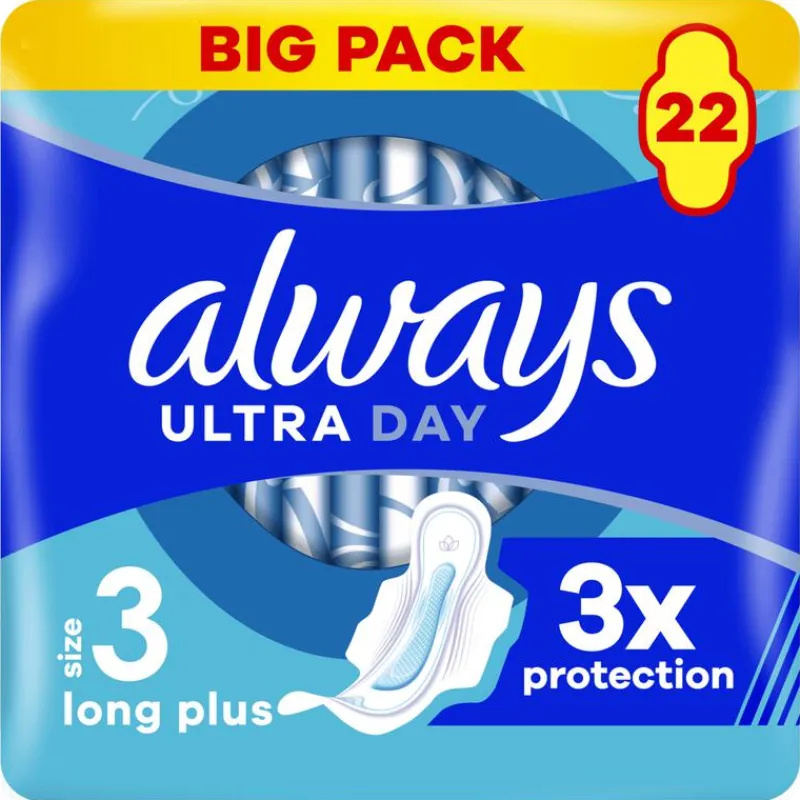 Neem geen genoegen met minder dan drievoudige bescherming met ALWAYS Ultra Long Plus (maat 3) maandverband.