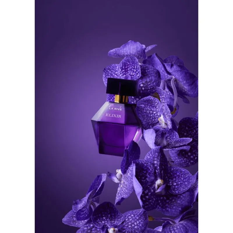 Elixer van La Rive is een unieke en mystieke geurcreatie. De geur opent met frisse tonen van mandarijn, de hartnoot bevat sensuele essences zoals jasmijn uit Marokko en witte amber. De basis wordt gevormd door warme akkoorden van cashmeranhout.