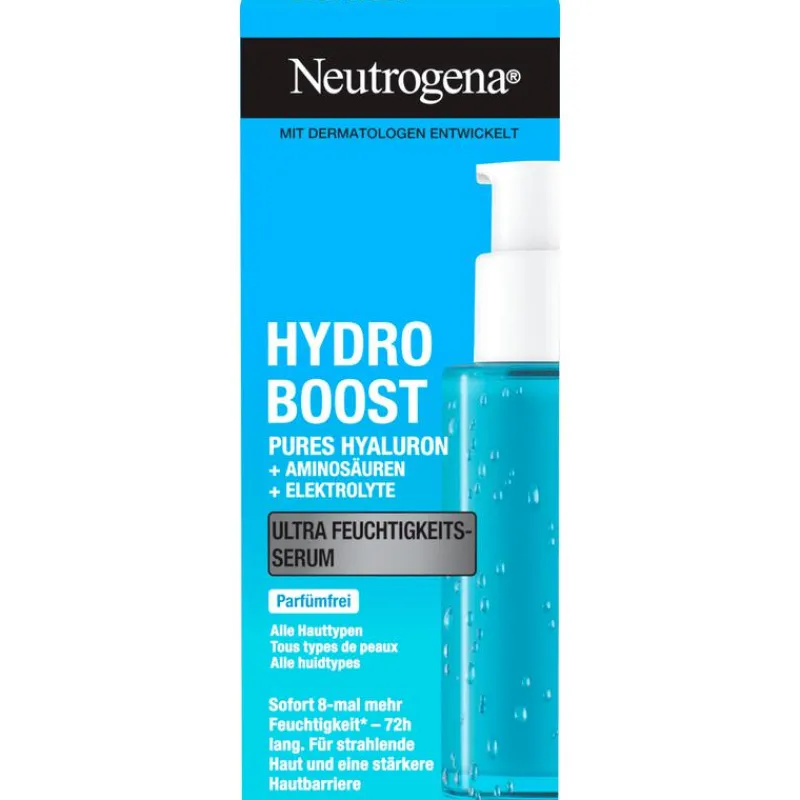 Neutrogena Hydro Boost Ultra Hydrating Serum is een effectieve en lichtgewicht vochtinbrengende crème voor uw huid. Deze serum hydrateert uw huid en helpt om droge lijntjes en rimpels te verminderen. Neutrogena Hydro Boost Ultra Hydrating Serum is verrijkt met hyaluronxuur en vitamine E-parels. Hierdoor zal uw huid revitaliseren en een energieboost krijgen. Na gebruik ziet uw huid er direct verfrist en stralend uit.