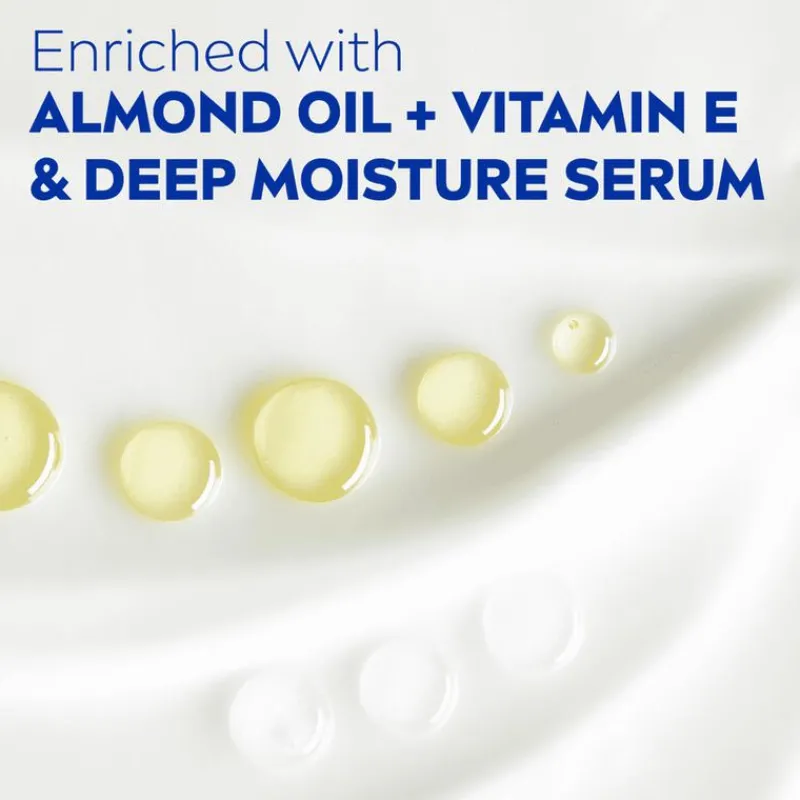 Ontdek de NIVEA 5-in-1 Verzorgende Body Milk, speciaal ontwikkeld voor droge tot zeer droge huid. Deze body milk biedt 5-in-1 Complete Care met intensieve hydratatie tot wel 48 uur*, zodat jouw huid beschermd is tegen uitdrogen en heerlijk zacht aanvoelt. De niet-vette formule is verrijkt met hyaluronzuur, amandelolie en vitamine E, waardoor jouw huid gezond oogt en soepel blijft.