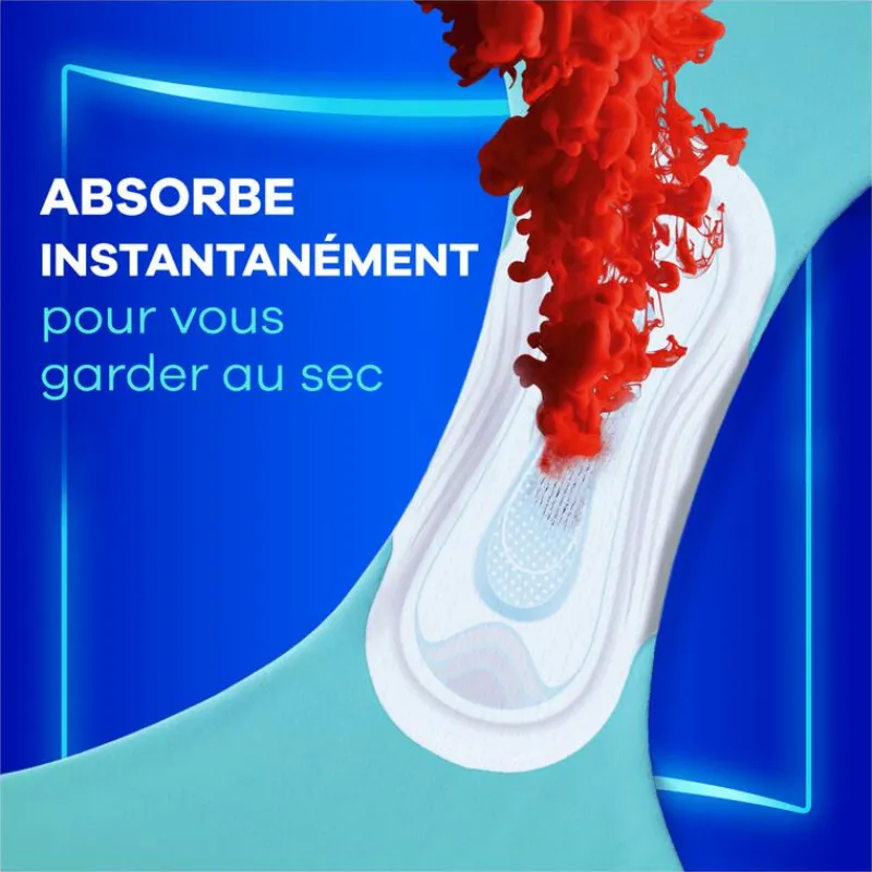 Superabsorberend maandverband met InstantDry systeem dat vocht in enkele seconden absorbeert
