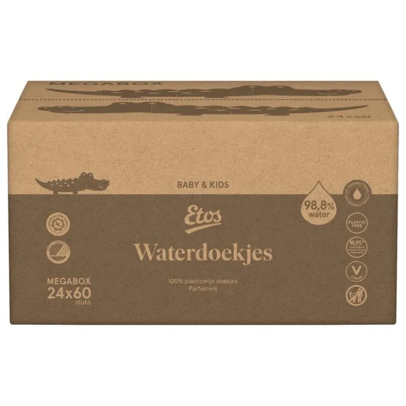 Etos Baby Waterdoekjes zijn 100% vezeldoekjes van natuurlijke oorsprong zonder plastic. Deze doekjes