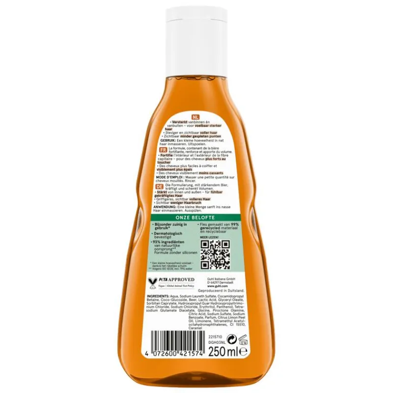 De bijzonder zuinige formule, met versterkend bier, verstevigt het haar van binnenuit en geeft blijvend volume.
