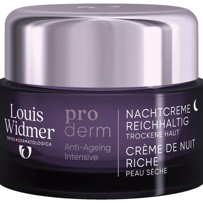 Louis Widmer proderm Nachtcrème Rijke Textuur is een anti-ageing nachtcrème die de huid voedt en regenereert.