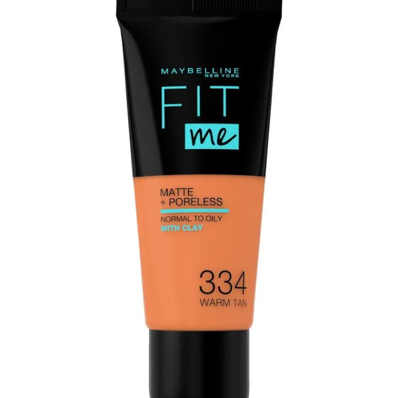 Maybelline New York Fit Me Matte & Poreless Foundation 334 Warm Tan is een medium dekkende foundation met matte finish voor de normale en vette huid