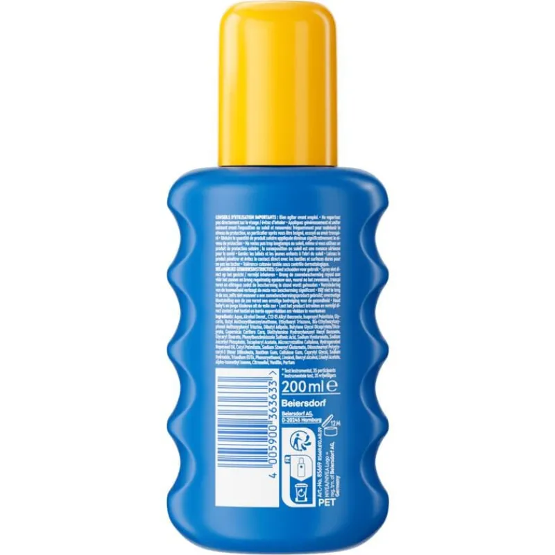 Geef je huid de bescherming die het verdient met de NIVEA SUN Protect & Hydrate Spray SPF50+. Deze zonnespray biedt betrouwbare UVA/UVB-bescherming en beschermt je huid tegen UV-schade op korte en lange termijn. Dankzij de innovatieve CitraCell-ProtectTM-formule met vitamine C en hyaluron wordt een extra beschermingslaag gecreëerd die je huid niet alleen beschermt, maar ook hydrateert. De lichte formule trekt snel in, is eenvoudig aan te brengen en laat geen vettig gevoel of wit residu achter.Met een hydraterende werking die tot 48 uur* aanhoudt, zorgt deze zonnebrand spray ervoor dat je huid zacht en gezond aanvoelt, zelfs tijdens intensieve blootstelling aan de zon. Of je nu op zoek bent naar een effectieve zonnebrandcrème gezicht, een handige zonnebrand spray voor onderweg, of een betrouwbare keuze voor de hele familie, deze zonnespray voldoet aan al je verwachtingen.Perfect te combineren met je favoriete aftersun voor een complete zonverzorgingsroutine. *Instrumentele test, 43 vrijwilligers