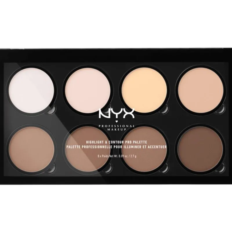 Het NYX Professional Makeup Highlight & Contour Pro Palette HCPP01 bestaat uit acht verschillende kleuren om het gezicht de mooiste vorm te geven. Benadruk favoriete gelaatstrekken en gebruik het palet om andere delen van het gezicht wat minder naar voren te brengen.