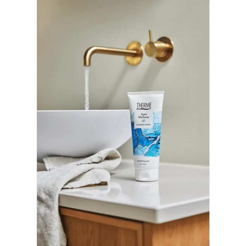Therme Aqua Wellness Shower Satin is een rijk verzorgende douchegel voor een zijdezacht huidgevoel. Geniet van de zuivere, sprankelende geur van de frisse oceaan gecombineerd met citrusvruchten en ontluikende lentebloemen.