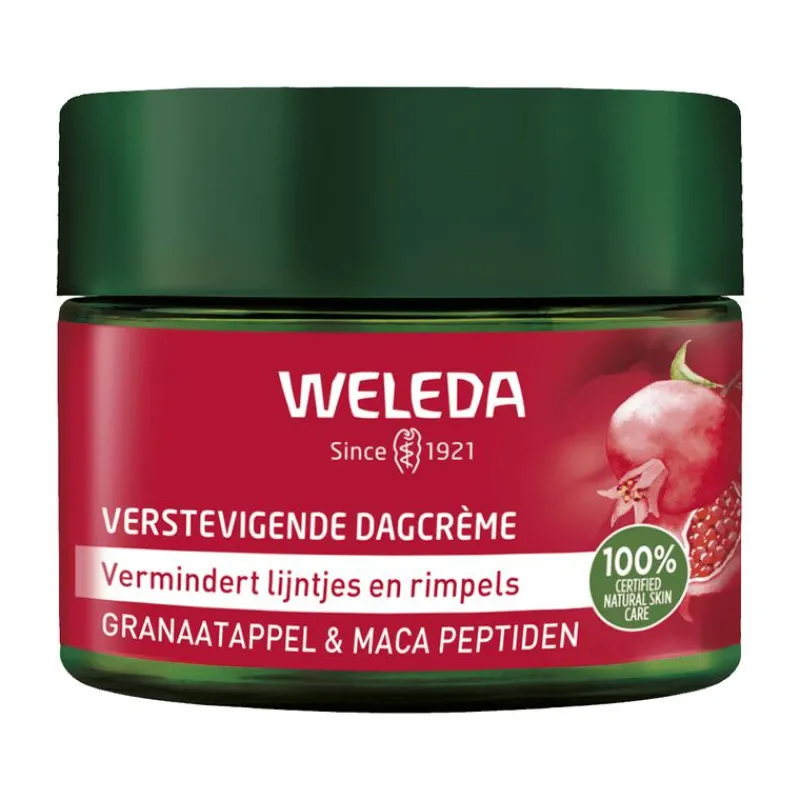 Weleda Verstevigende Dagcrème bevat granaatappelpitolie. De granaatappel is niet alleen gezond om te eten, maar is ook een fantastische bron aan antioxidanten. Het bevordert de regeneratie van de huid en is daarom zeer geschikt voor de rijpere huid.