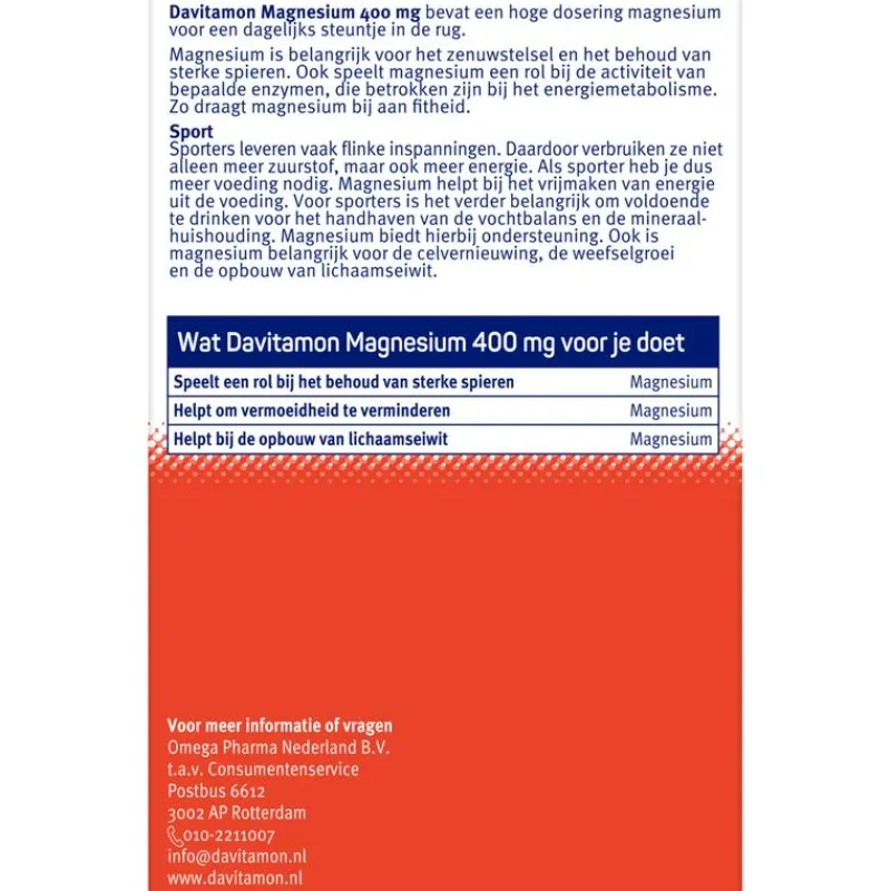 Davitamon Magnesium tabletten is ontwikkeld voor mensen die actief en vitaal willen blijven en bevat, naast magnesium, een combinatie van vitamines en mineralen die vaak samenwerken in het lichaam. De Davitamon Magnesium voor Spieren en Botten tabletten geven geleidelijk vitamines en mineralen af en zijn daarom: