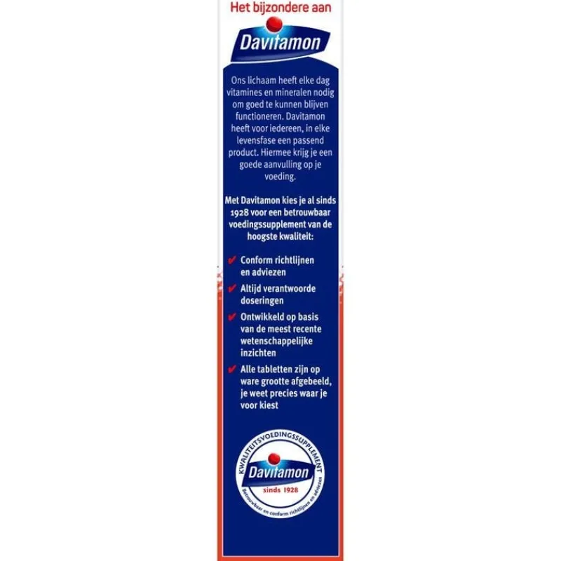Om goed te kunnen blijven functioneren heeft ons lichaam elke dag vitamines en mineralen nodig. Daarom heeft Davitamon voor iedereen, in elke levensfase, een ander product. Zo krijg jij de juiste aanvulling op je voeding. Davitamon biedt al sinds 1928 betrouwbare voedingssupplementen aan van de hoogste kwaliteit.