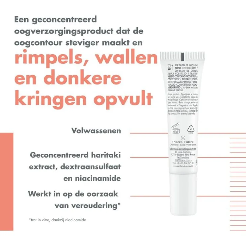 Verzorging voor de oogcontour op basis van dextraansulfaat, puur hyaluronzuur en niacinamide die doelgericht inwerkt op de oorzaak van huidveroudering*. De huid van de oogcontour is steviger. Rimpels worden opgevuld, wallen worden minder en donkere kringen worden vervaagd.