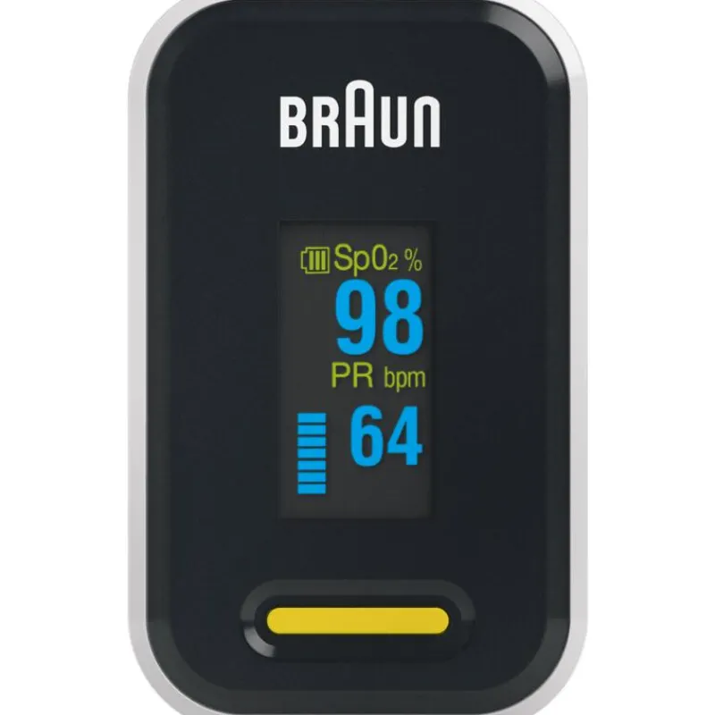 De Braun Pulse Oximeter 1 – Volwassenen vanaf 18 jaar kunnen hun ademhalingsgezondheid onder controle houden en hun zuurstofniveau altijd en overal in de gaten houden. Ideaal voor mensen met COPD, longontsteking, slaapapneu of sporters die hun vooruitgang willen bijhouden. Onze Braun Pulse Oximeter 1 heeft een eenvoudig vingerclipontwerp en éénknopsbediening. Het OLED-scherm met achtergrondverlichting kan op zes verschillende manieren draaien, zodat u snel uw resultaten vanuit elke hoek kunt zien. Bovendien schakelt het na acht seconden automatisch uit om aan te geven wanneer uw vinger zich in de juiste positie bevindt voor de meest nauwkeurige meting. Inclusief koord en twee AAA-batterijen.