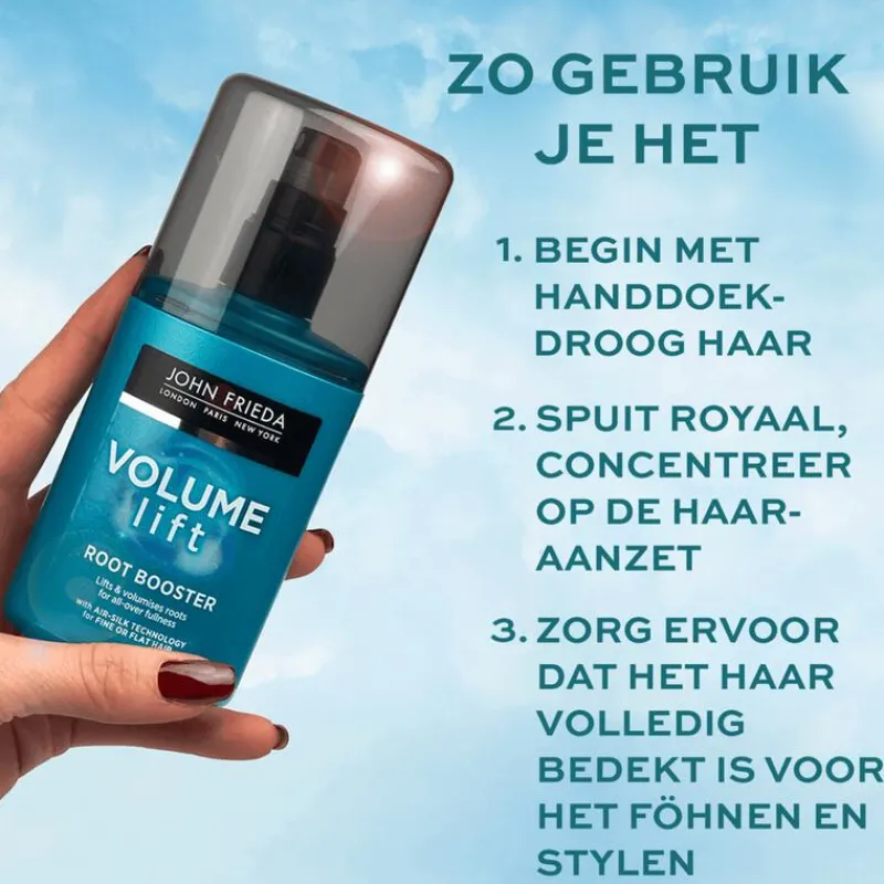- Geef je haar volume en een ultralichte versteviging met de John Frieda Volume Lift Kickstarter Thickening Mousse. Onze lichtgewicht formule verrijkt met peptiden geeft een lichte, luchtige mousse met precieze dosering en maakt het haar voller voor een volumineuze look die zacht aanvoelt. Bied hittebescherming tot 230°.