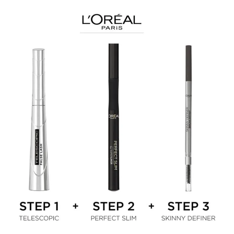 Met de False Lash Telescopic Mascara van L’Oréal Paris creëer je het effect onweerstaanbare lengte met een extra zwart resultaat. Het flexibele multi-precisie borsteltje met de 4 platte zijkanten verlengen de wimpers tot in het oneindige, voor een telescopisch effect. Zelfs de fijnste wimperhaartjes worden tot het uiteinde verlengd en verstevigd. De zwarte volume mascara geeft dus het effect van valse wimpers, met onkenbaar volume voor een krachtige blik.
