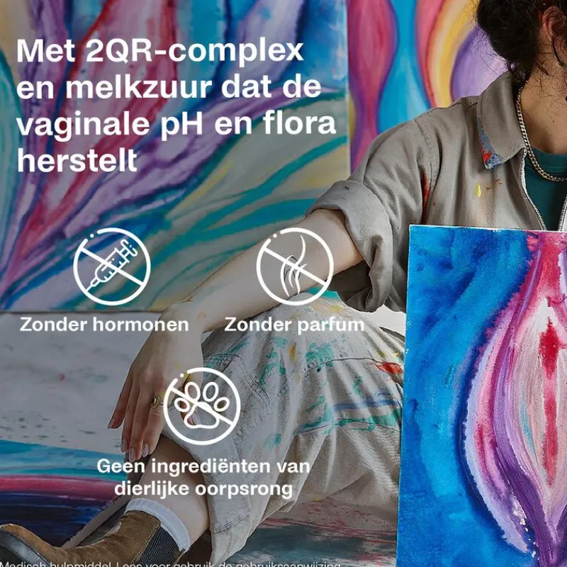 – Vermindert onaangename geur enafscheiding- Herstelt de vaginale pH en flora- Geeft direct verzachtende enkalmerende verlichting