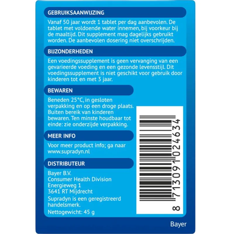 Supradyn Vital 50+ multivitamine is speciaal ontwikkeld om natuurlijke energie in het lichaam te activeren bij mannen en vrouwen vanaf 50 jaar.