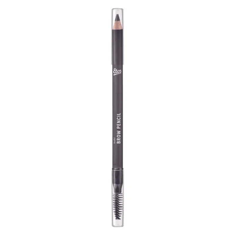 Met de Etos Kohl Brow Pencil Brown Black geef je jouw wenkbrauwen een intense, diepbruine kleur met een hint van zwart. Dit potlood heeft een stevige punt voor het tekenen van fijne haartjes en een spooley brush om je wenkbrauwen perfect in model te brengen en de kleur te blenden.