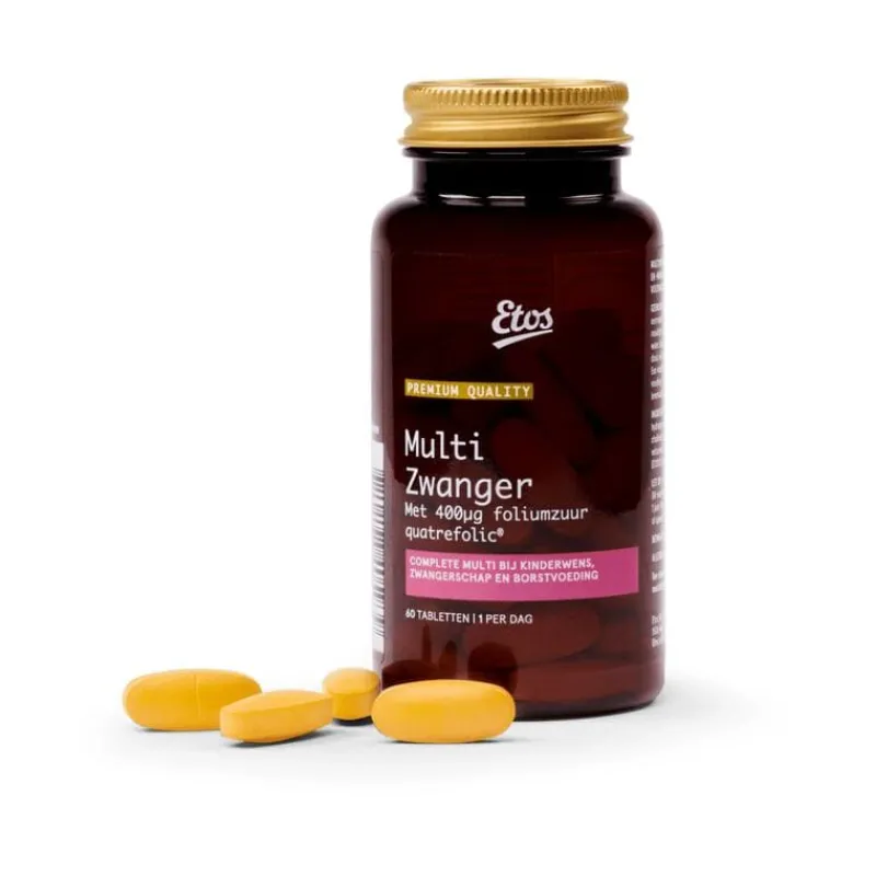 Etos Multi Zwanger is een complete Multivitamine bij kinderwens, zwangerschap en borstvoeding.