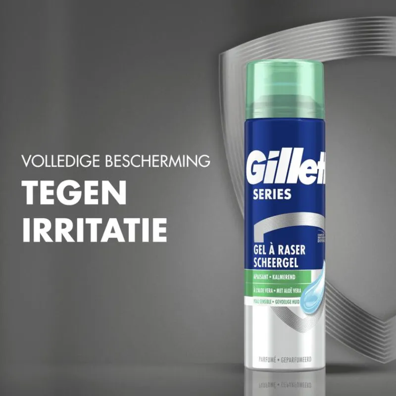 - De verzachtende scheergel van Gillette Series helpt je gevoelige huid tegen scheerirritatie te beschermen