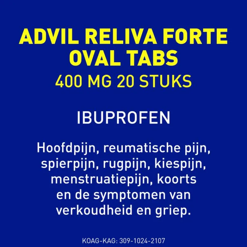 Advil Reliva Forte Oval-Tabs 400 mg, voor effectieve en langdurige pijnverlichting tot 8 uur lang
