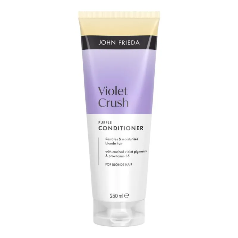 De John Frieda Violet Crush Daily Purple Shampoo is speciaal ontwikkeld om ongewenste gele ondertonen in blond haar te verminderen. Dankzij de gemalen Violet pigmenten en Provitamine B5 neutraliseert deze shampoo koperachtige tinten en geeft het je blonde haar een heldere, frisse uitstraling. De hydraterende formule reinigt zonder uit te drogen en is geschikt voor dagelijks gebruik.