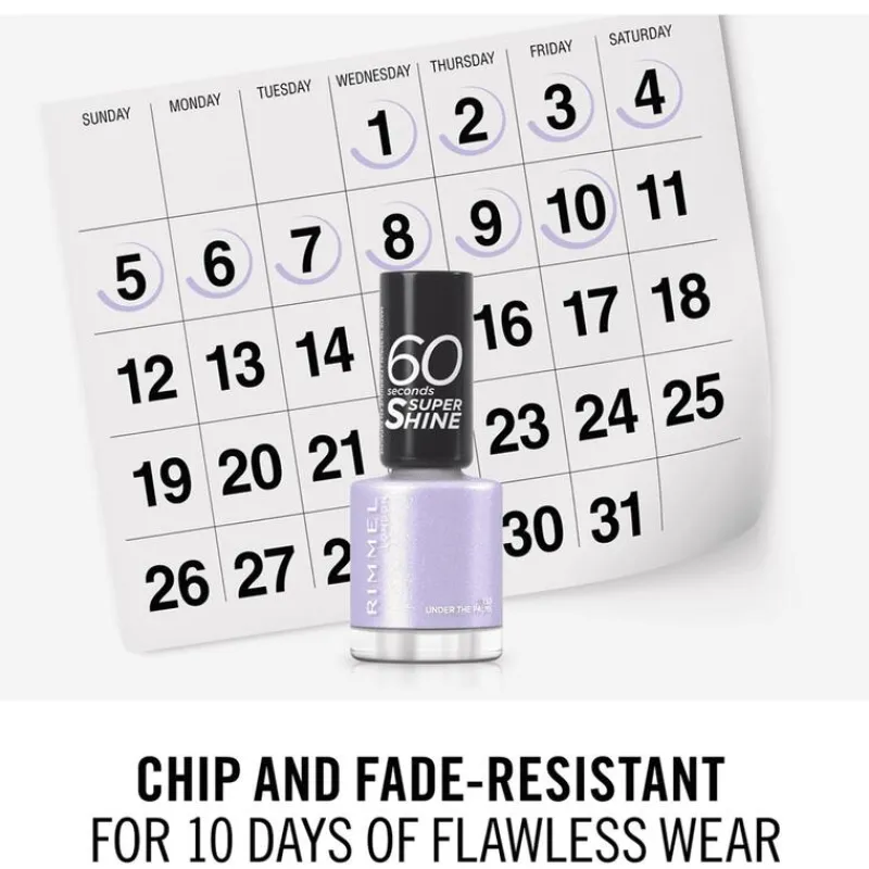 Shiny en verzorgde nagels in één minuut zijn binnen handbereik met de Rimmel London 60 seconds Supershine nagellak! Met de sneldrogende formule zijn jouw nagels snel droog. Rimmel laat jou zijn wie jij bent. En net als London, staat Rimmel voor cool, onvoorspelbaar en edgy. Zelfexpressie zonder regels: wees jezelf, altijd echt en toegankelijk. Live the London Look!