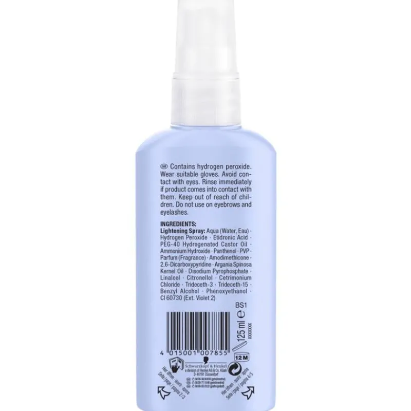 Blondeercrème: Aqua (Water, Eau), Octyldodecanol, Ammonium Hydroxide, Xanthan Gum, Sodium Gluceptate, Bis-Cetearyl Amodimethicone, Cellulose Gum, Sodium Laureth Sulfate, Ammonium Sulfate, Parfum (Fragrance), Etidronic Acid, Linalool, Citronellol, Benzyl Alcohol, CI 77007 (Ultramarines)
