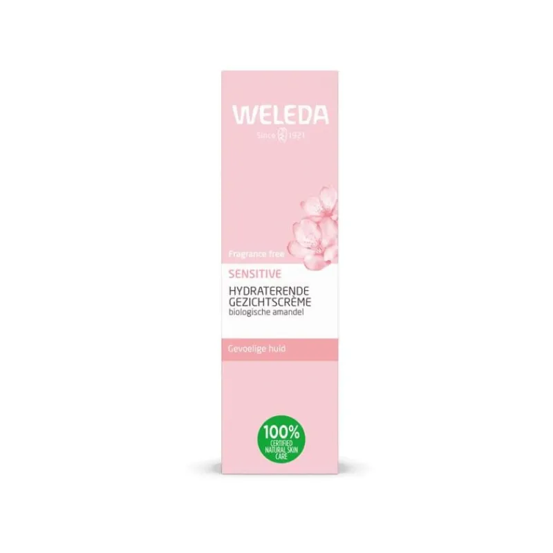 WELEDA Sensitive Hydraterende Gezichtscrème is 100% natuurlijk en heeft als hoofdingrediënt amandelolie. De biologische amandelolie brengt je gevoelige en rode huid weer tot rust. Zo zorgt de crème, die je voor de dag én nacht kan gebruiken voor een zachte, rustige en soepele huid.