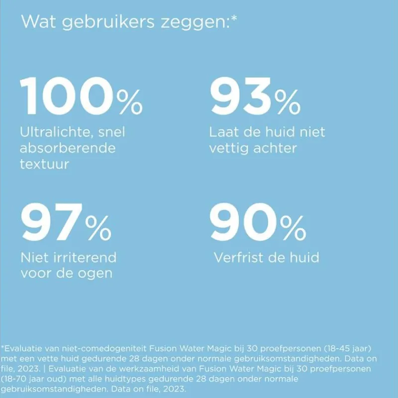Ultralichte textuur die onmiddellijk wordt opgenomen en geen residu achterlaat.