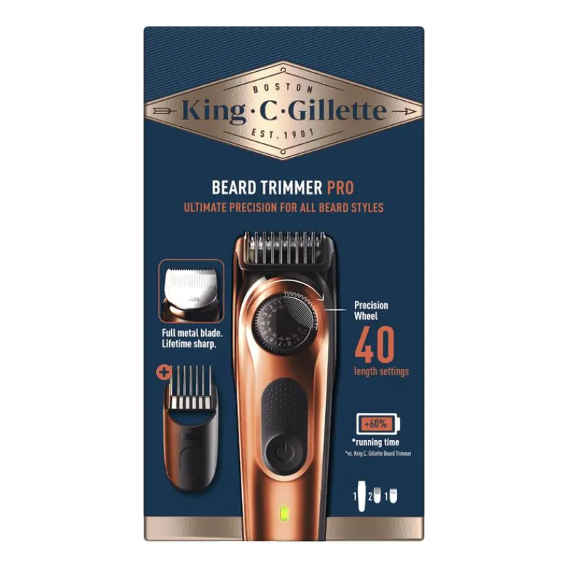 - King C. Gillette baardtrimmer PRO met precisiedraaiknop met 40 lengte-instellingen
