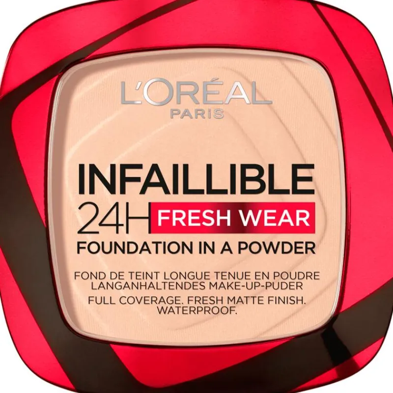 Ontdek de kracht van de L’Oréal Paris Infaillible 24H Fresh Wear Foundation in poedervorm. Deze poeder combineert het beste van beide werelden: de dekking van een foundation en het gemak van een poeder. De formule is doordrenkt met ultrafijne kleurpigmenten die zich aan je huid hechten voor een langdurige dekking zonder het gevreesde maskereffect. Met deze foundation in poedervorm bereik je moeiteloos een natuurlijke, egale finish die de hele dag blijft zitten. Het matteert de huid en camoufleert oneffenheden net zo effectief als een vloeibare foundation, maar dan met het comfort en de handigheid van een poeder. Bovendien is de Infaillible 24H Fresh Wear Foundation in a Powder ontworpen om niet af te geven en voelt het heerlijk comfortabel aan op de huid. Verwen jezelf met een langdurige, natuurlijke look die perfect past bij jouw levensstijl. Met deze foundation in poedervorm hoef je nooit meer compromissen te sluiten tussen dekking, comfort en gemak. Omdat je het waard bent.
