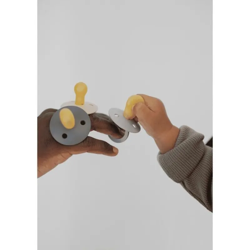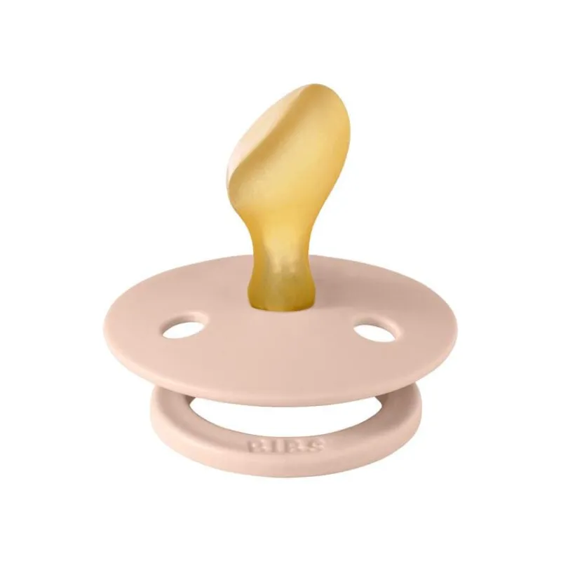 BIBS Colour is de originele fopspeen met een rond schild en een anatomische speen.
