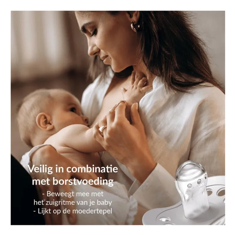 • Natural – symmetrisch ovaal zuiggedeelte, makkelijk geaccepteerd door de meeste baby’s• Dental – platte & bolle zijde, stimuleert tong- en kaakontwikkeling• Dynamisch – gelaagde siliconen met bolletjes, imiteert de moederborst en ondersteunt borstvoedingIeder kind heeft zijn eigen fopspeenvoorkeur en alle drie de soorten zijn even verantwoord. Afhankelijk van de voorkeur van je kindje kun je kiezen voor de Natural, Dental of Dynamische fopspeen. Weet je het nog niet? Dan adviseren we om in de eerste instantie voor de Natural of Dynamische variant te kiezen.
