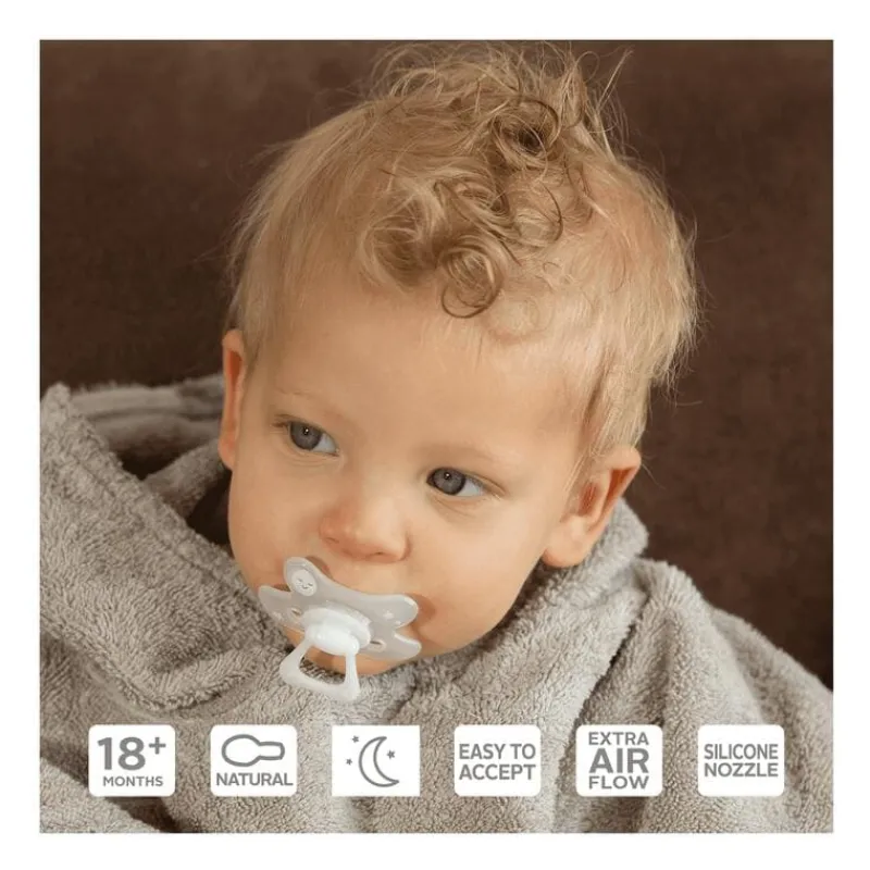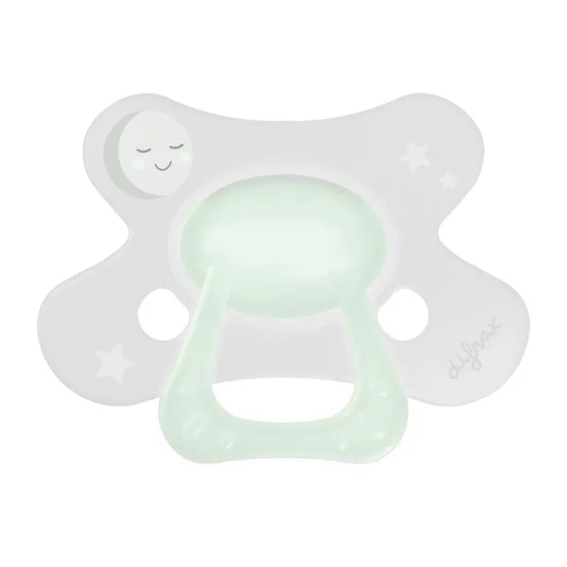 De Difrax Fopspeen Natural 20+ Maanden is speciaal ontwikkeld voor kindjes vanaf 20 maanden. Het siliconen zuiggedeelte is steviger en meer gevuld dan bij de 12+ maanden fopspeen. De 20+ maanden fopspeen is daarom nog beter afgestemd op de behoefte van kindjes van 20+ maanden. De gehele ring van het Glow in the Dark speentje absorbeert het licht en gloeit in het donker. Ideaal om de fopspeen in het donker makkelijk terug te vinden in het bedje.