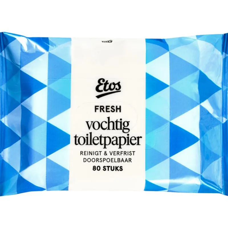 Voor een schoon en verzorgd gevoel gebruik je Etos Vochtig toiletpapier fresh na droog toiletpapier. Dit vochtig toiletpapier kan gewoon door het toilet gespoeld worden. Gebruik echter 1 velletje per keer.
