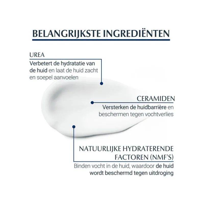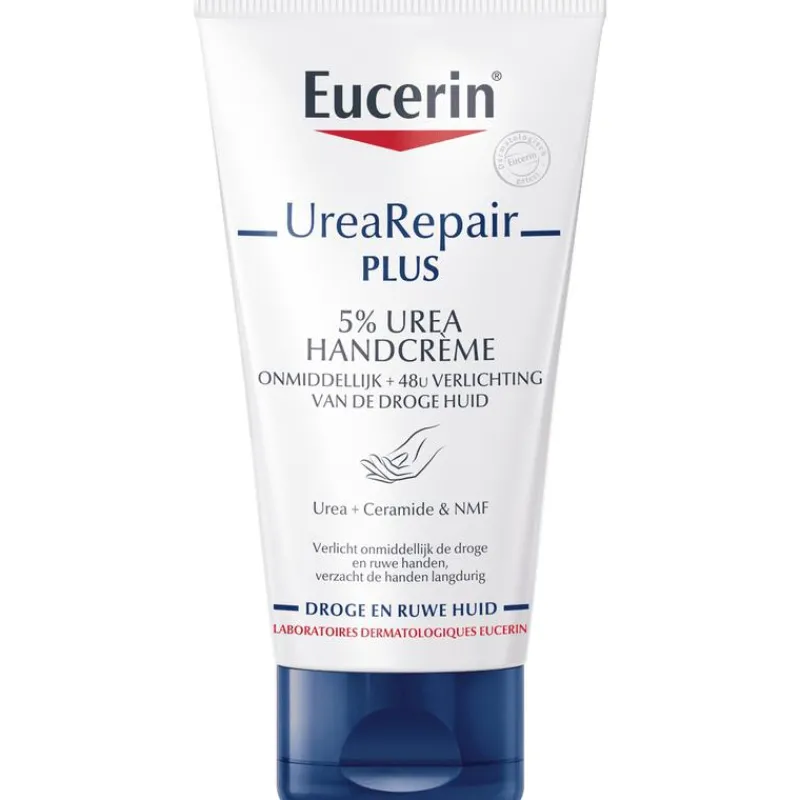 De UreaRepair PLUS Handcrème 5% Urea hydrateert intensief en verzacht de droge tot extreem droge hande, voor een merkbaar gladde en zachte huid. De handcrème bevat bevat ureum, ceramide en andere Natural Moisturising Factors (NMFs) en biedt klinisch bewezen zowel onmiddellijke verlichting als intense hydratatie aan ruwe, gespannen en extreem droge handen – zelfs na herhaaldelijk wassen van de handen. Geschikt voor mensen met xerosis, psoriasis, diabetis en een verouderde huid. Ook geschikt als aanvullende verzorging.