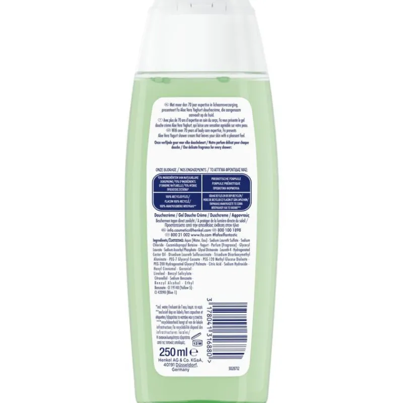 De formule van de Fa Yoghurt Aloe Vera douchecrème is pH-huidneutraal.