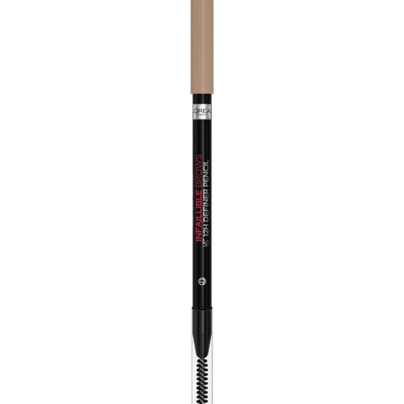 Heb je dunne wenkbrauwen? Probeer dan de L’Oréal Paris Infaillible 12H Definer Pencil ! Dit wenkbrauwpotlood is perfect voor een natuurlijk ogende wenkbrauwlook !Met de L’Oréal Paris Infaillible 12H Definer Pencil kun je jouw wenkbrauwen inkleuren en bijtekenen Zo creëer je gemakkelijk jouw ideale wenkbrauwvorm en geef je jouw wenkbrauwen wat extra kleur waar nodig.De stevige punt van het potlood zorgt ervoor dat je fijne haartjes kan tekenen en de poederachtige formule die mat is, zorgt voor een natuurlijk effect en is ideaal voor het definiëren en vormgeven van de wenkbrauwen. Dit slijpbaar wenkbrauwpotlood bevat een borsteltje op de andere kant.De Infaillible 12H Definer Pencil is makkelijk aan te brengen en houdt tot 12 uur lang*