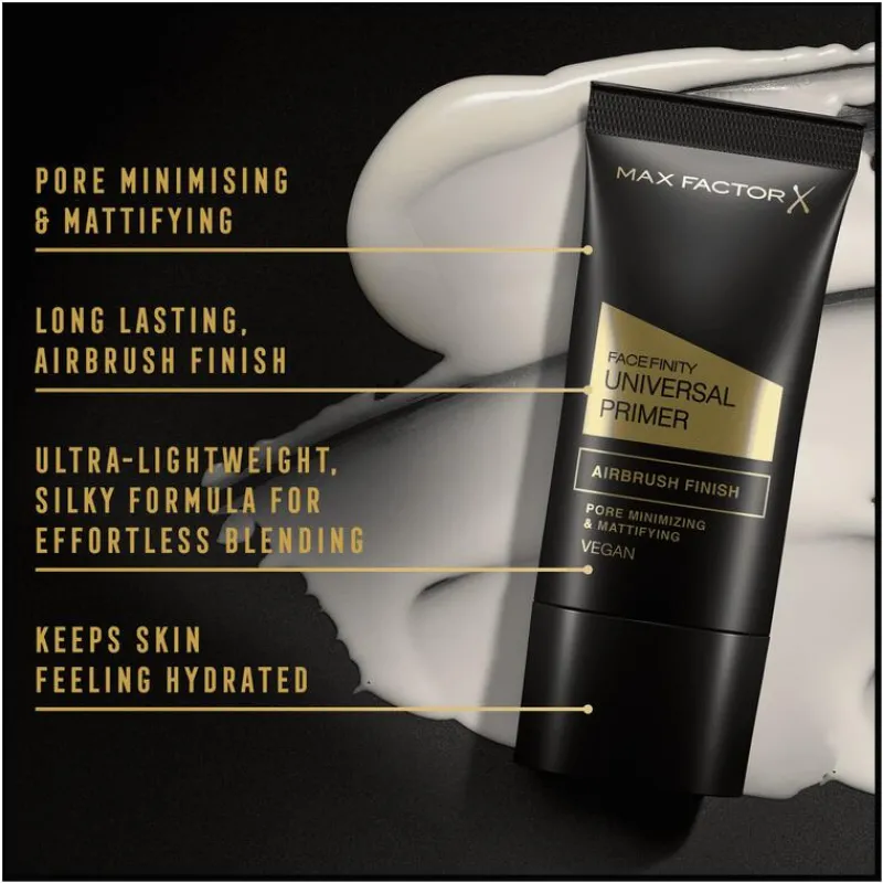 Maak kennis met de Max Factor Facefinity Universal Primer, een primer die de huid beschermt en de teint perfectioneert. Deze matterende, langhoudende make-upprimer verfijnt poriën en biedt een perfect egale finish. De vederlichte, zijdeachtige poedertextuur vervaagt en egaliseert oneffenheden en versmelt moeiteloos met de huid, die bovendien heerlijk gehydrateerd blijft. De Max Factor primer heeft een vegan formule die verrijkt is met antioxidanten en vitamine E om de huid optimaal te beschermen. Een porievervagende primer die ervoor zorgt dat make-up langer blijft zitten, voor een feilloze en langhoudende look.