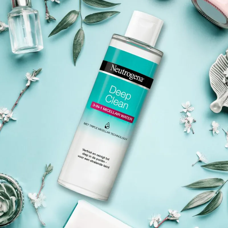 Neutrogena® Deep Clean 3-in-1 micellair water is oftalmologisch getest en geschikt voor alle huidtypen. Dit milde micellaire water met drievoudige werking verwijdert in een oogwenk alle onzuiverheden. Dankzij de drievoudige micellaire technologie verwijdert Neutrogena® Deep Clean 3-in-1 gezichtsreiniger make-up en zelfs waterproofmascara, zonder te wrijven, elimineert talg en vuil en reinigt de huid tot in de diepste lagen zonder het vochtgehalte van de huid aan te tasten. Voor een stralende teint.