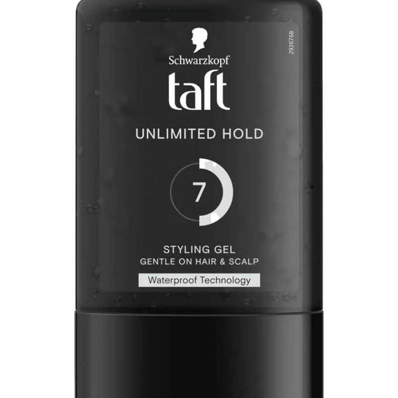Taft Unlimited hold Styling Gel met waterbestendige technologie biedt tot 72 uur ultieme, actiebestendige controle en plakt niet. Deze gel is gemakkelijk uit te wassen met shampoo.
