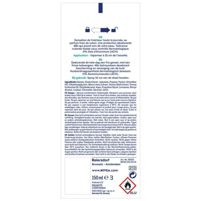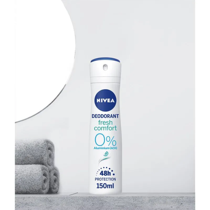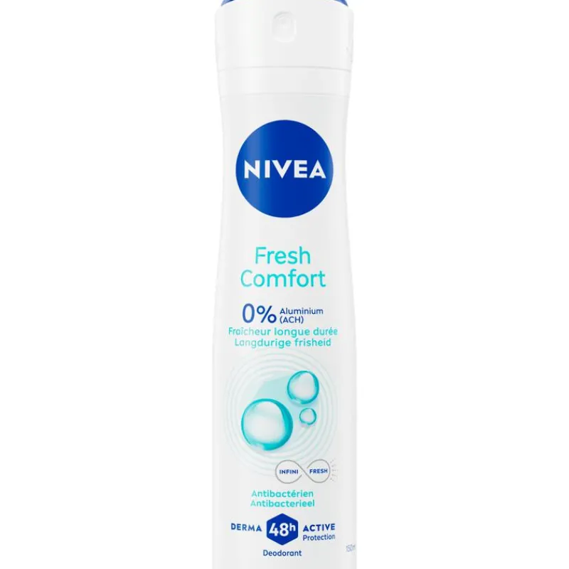 NIVEA Fresh Comfort Deodorant Spray is de perfecte keuze voor wie op zoek is naar een langdurig fris gevoel gedurende de dag. Met een heerlijke katoenfrisse geur zorgt deze deo ervoor dat je je altijd zelfverzekerd en comfortabel voelt, zelfs tijdens de drukste momenten. De unieke NIVEA INFINIFRESH-formule biedt een langdurig fris huidgevoel dat verder gaat dan slechts een paar uur en helpt actief geurveroorzakende bacteriën te bestrijden, zodat je de hele dag door fris blijft.Deze deodorant spray is ontwikkeld met de innovatieve Derma 48u Active Protection-technologie, die samenwerkt met je huid voor een betrouwbare en krachtige bescherming tegen zweet en geur. Tegelijkertijd bevatten onze deodorants huidvriendelijke formules die speciaal zijn ontworpen om mild en verzorgend te zijn voor de huid, zonder afbreuk te doen aan de effectiviteit.Of je nu onderweg bent, werkt of ontspant, NIVEA Fresh Comfort Deodorant Spray is je ideale partner voor een fris en schoon gevoel dat de hele dag aanhoudt. Kies voor NIVEA deodorants en ervaar hoe krachtige bescherming en huidvriendelijkheid samenkomen in één product.
