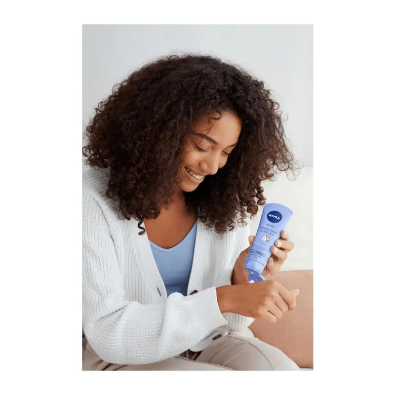 Geef je handen de verzorging die ze verdienen met NIVEA Smooth Hands & Nail Care Handcrème. Deze handcrème voor droge handen hydrateert en verzacht je huid direct, en biedt maar liefst 24* uur verzorging. De rijke formule is verrijkt met natuurlijke macadamia-olie en lotusbloem, waardoor je handen zacht en soepel blijven, terwijl de huidbarrière wordt versterkt.
