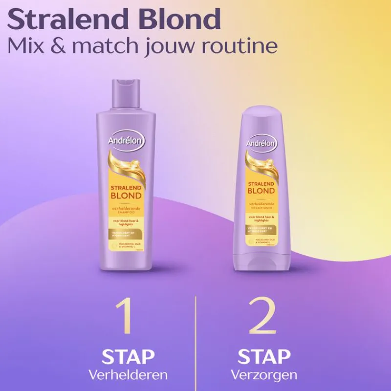 Ontdek de Stralend Blond lijn, met Macadamia-olie & Vitamine C, ontworpen om de helderheid en glans van blond haar te verhogen, voor een levendige, natuurlijke uitstraling. Het schittert, voelt fris en is stralend blond.