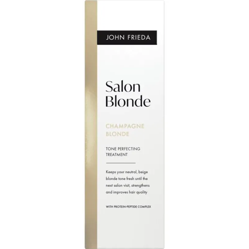 Onthul je meest stralende blond met onze Tone Perfecting Treatment. Het verbetert en verfrist je blonde kleur tot je volgende bezoek aan de salon. Kies “Platinum Blonde” voor ijsachtige, koele tinten. Versterkt het haar en maakt het veerkrachtiger tegen haarbreuk. Voegt glans toe. Blond is meer dan een haarkleur en niemand heeft een beter gevoel voor blond dan John Frieda. John Frieda Tone Perfecting Treatment Platinum Blonde houdt je ijsachtige, koele blonde tint fris tot je volgende kappersbezoek, en versterkt en verbetert de haarkwaliteit.(*in vergelijking met normale shampoo)