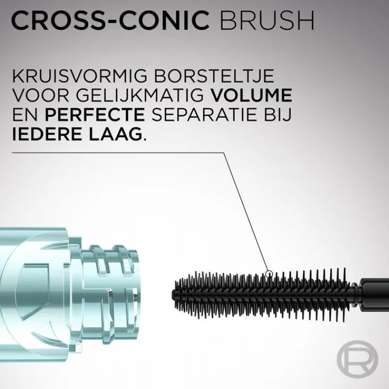 Voor het perfecte resultaat, breng de mascara aan door het Cross-Conic borsteltje vanaf de wimperaanzet naar de wimperuiteindes te bewegen. Laat drogen, en breng meerdere lagen aan naar wens voor extra volume.
