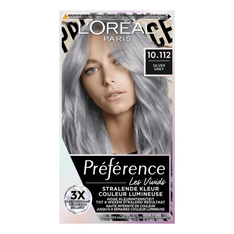 L’Oréal Paris Préférence Vivids is een permanente haarverf met krachtige en pure kleurpigmenten die bijdragen aan een intense, levendige kleur met een hoge kleurintensiteit. In de verpakking van Préférence Vivids vind je 4 componenten: de kleurgel, de ontwikkelcrème, de glansbeschermende conditioner en natuurlijk een paar handschoenen. De kleurgel met een transparante gel-formule biedt tot 3 keer lanzender haar en een kleur vol reflecties. Deze kleurgel meng je met de ontwikkelcrème voor de kleurbehandeling. De Préférence glansbeschermende conditioner kan na de kleurbehandeling meerdere malen gebruikt worden en geeft het haar een langdurige glans. De conditioner bevat een UV-filter om het gekleurde haar tegen de invloeden van buitenaf, bijvoorbeeld de zon, te beschermen en een afgeleide van Vitamine E, ter ondersteuning van de haarkwaliteit. Gebruik de conditioner een keer per week om de glans in het haar langer te behouden.