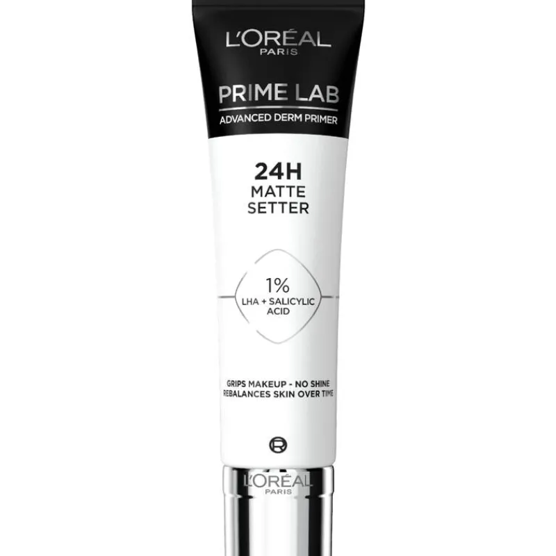 Heb je een vettige huid? Probeer dan de nieuwe Prime Lab Matte Setter van L’Oréal Paris!Deze lichtgewicht primer vermindert glans direct en heeft een matterend effect tot 24 uur lang.* Je huid glimt minder en ziet er minder vettig uit als je dit product als eerste stap van je gezichtsmake-up routine gebruikt. De gel textuur voelt licht en comfrotabel aan op de huid en zorgt ervoor dat je make-up extra lang blijft zitten. De formule, verrijkt met 1% LHA en salicylzuur, helpt op de lange termijn om de huid er meer in balans uit te laten zien. Met de Prime Lab Matte Setter heb je dus voordelen voor de huid op de lange termijn, een matterend effect en extra langhoudende make-up. Een 3-in-1 dus!