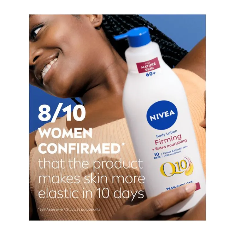 NIVEA Q10 Verstevigende + Extra Voedende Body Lotion met 99,5% pure Q10 + Arganolie verstevigt de huid merkbaar en verbetert de elasticiteit vanaf 10 dagen.*